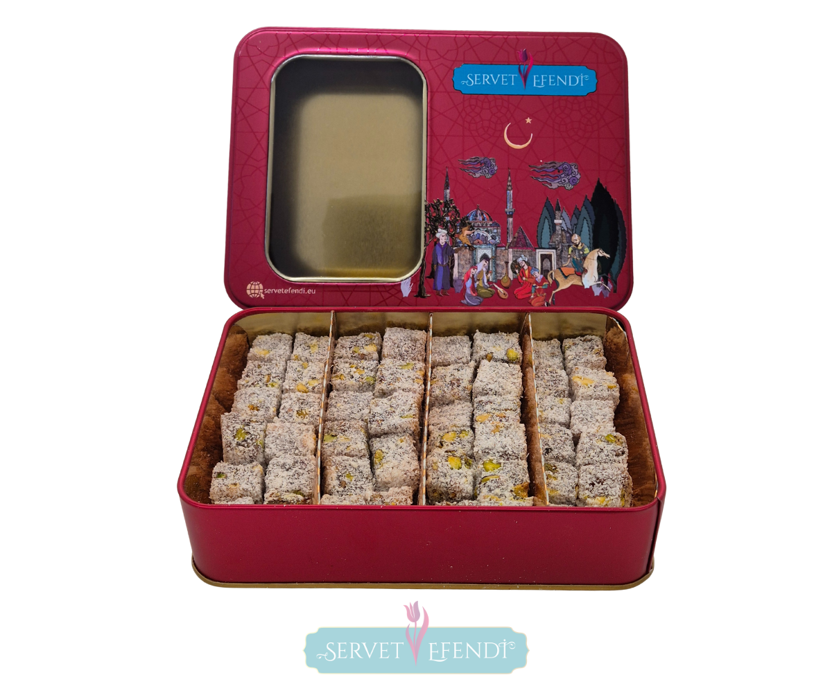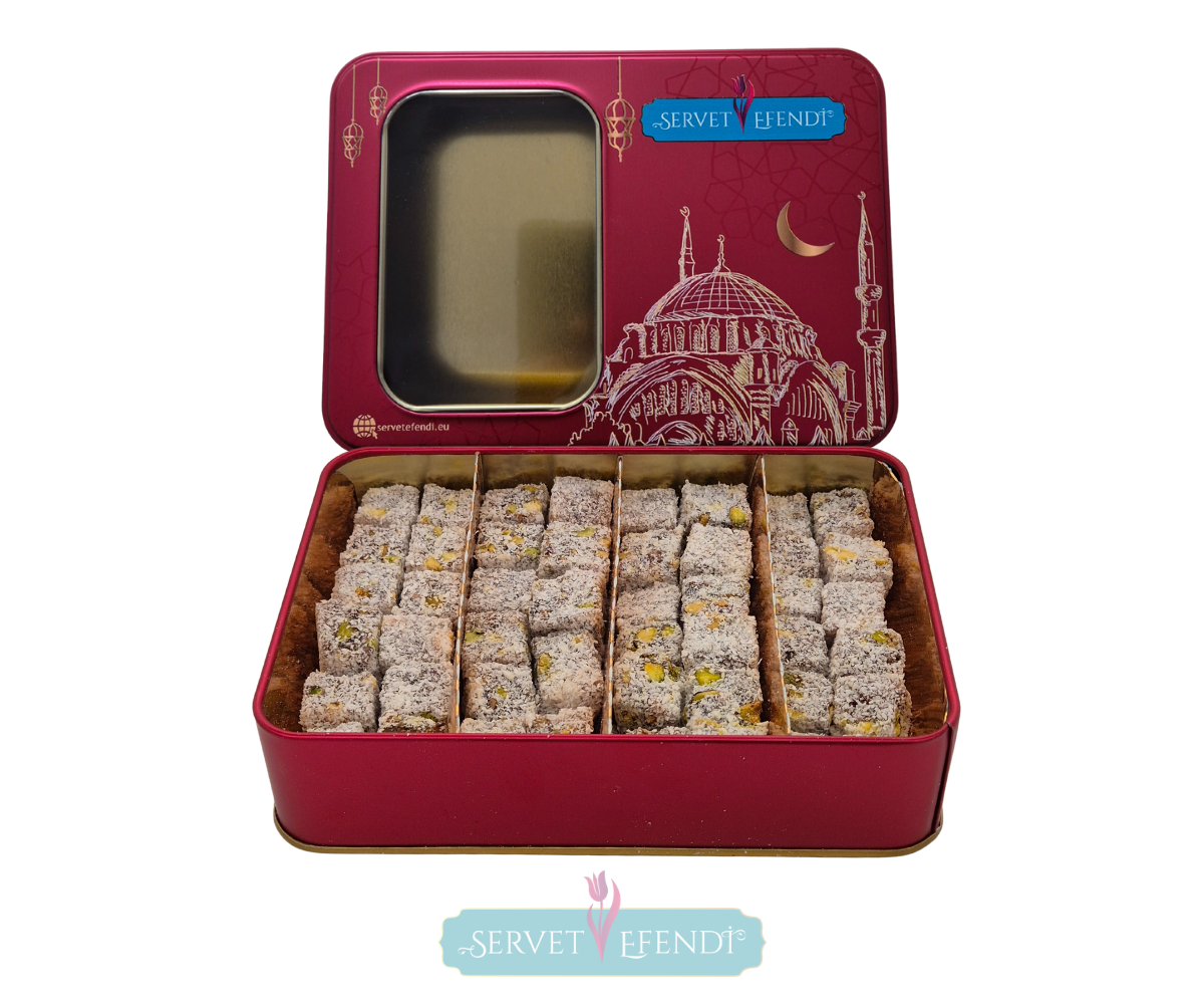 Sadece lezzetiyle değil, sunumuyla da göz kamaştıran bu lokum kutusu, özel misafirlerinize ikram etmek veya sevdiklerinize hediye etmek için ideal. Selçuklu desenlerinin zarafeti, kutunun tasarımına zarif bir hava katıyor.