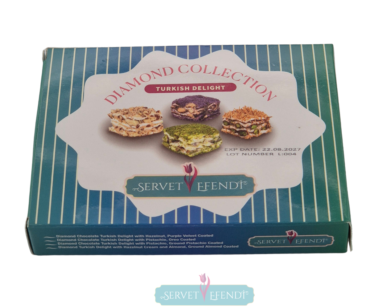4 Çeşit lüks fıstıklı, bademli ve fındıklı Baklava dilim lokum içerir. Ürünler 140 gr ambalajlı kutudadır.