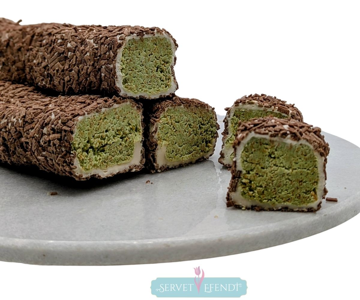 Çikolata ve fıstığın uyumu, sarma lokumun ipeksi dokusuyla birleşti…